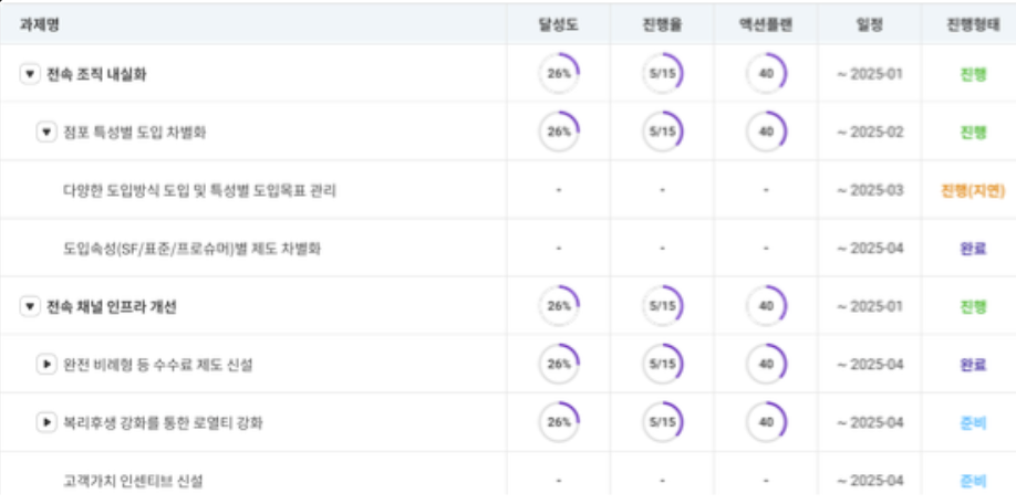 - 부문별 과제-액션플랜-KPI 계층 구조 렌더링